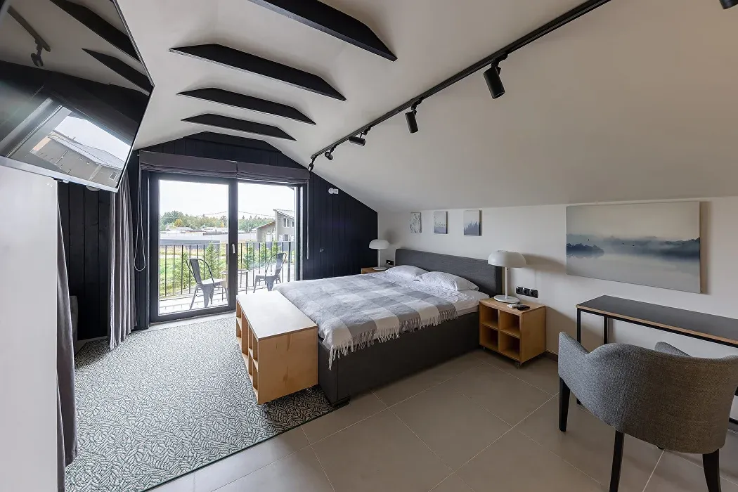 • оснащение дома мебелью (большой шкаф в спальне, туалетный столик и двуспальная кровать).