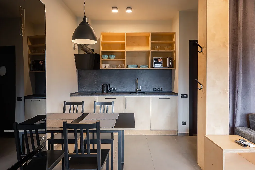 • оснащение дома техникой (кондиционер, холодильник, посудомоечная машина, варочная поверхность, микроволновая печь, чайник и два телевизора)